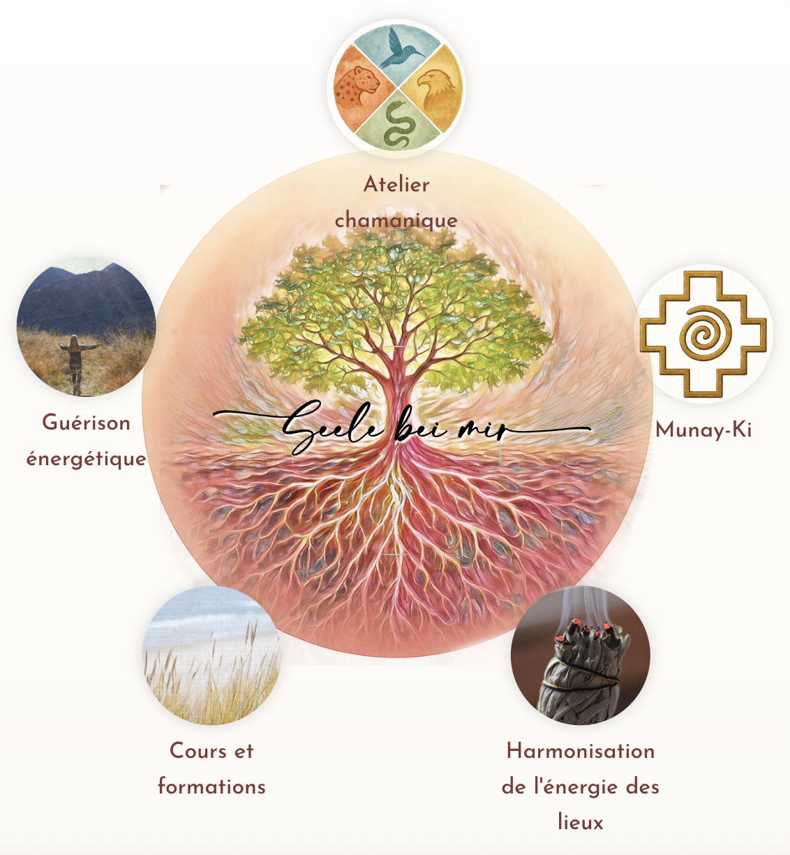 Chaque prestation — séance individuelle, atelier, formation ou harmonisation de lieu — s’inscrit dans cette vision unifiée : toi, ton corps-esprit-âme, ton espace de vie, ta propre dynamique intérieure, tout est connecté et soutenu.